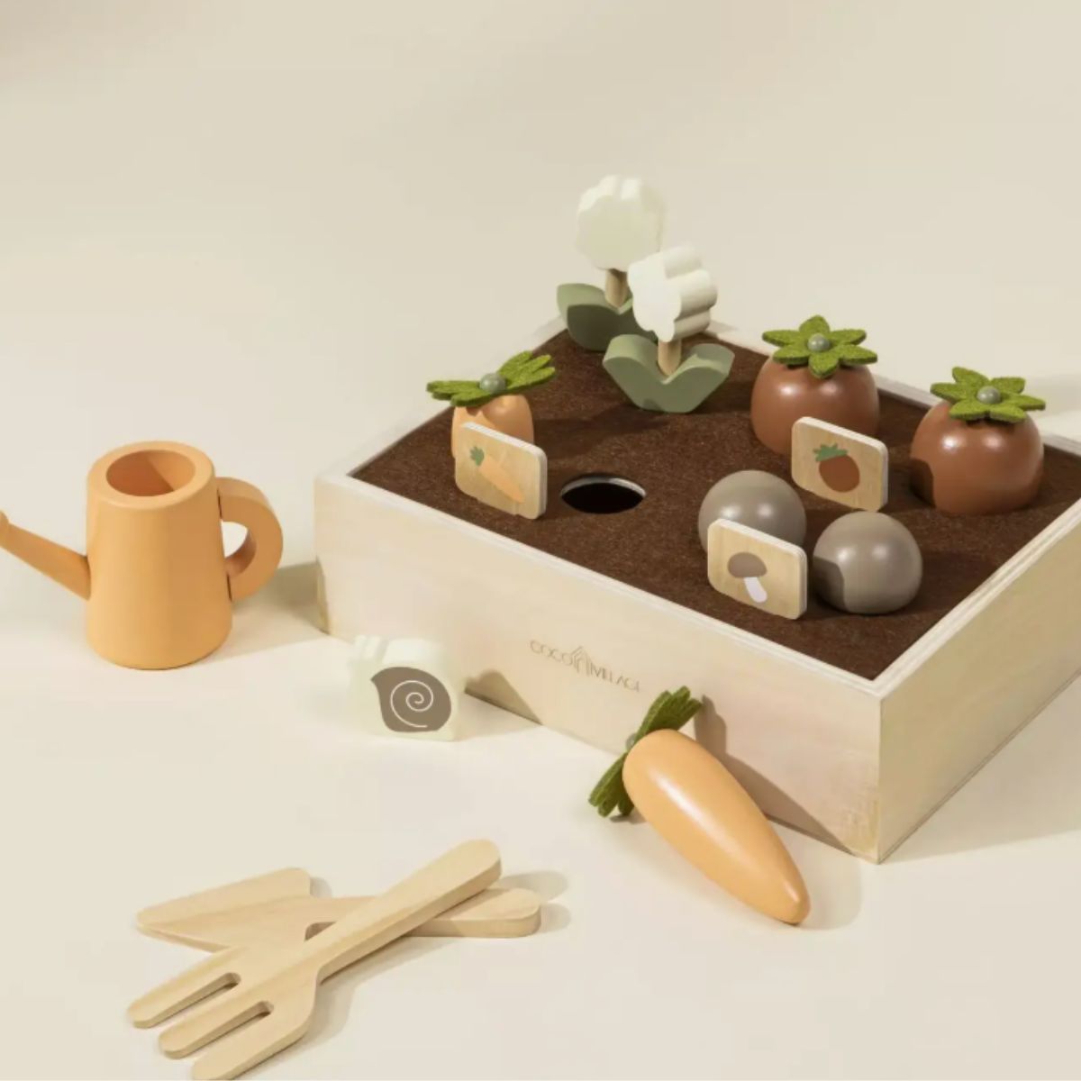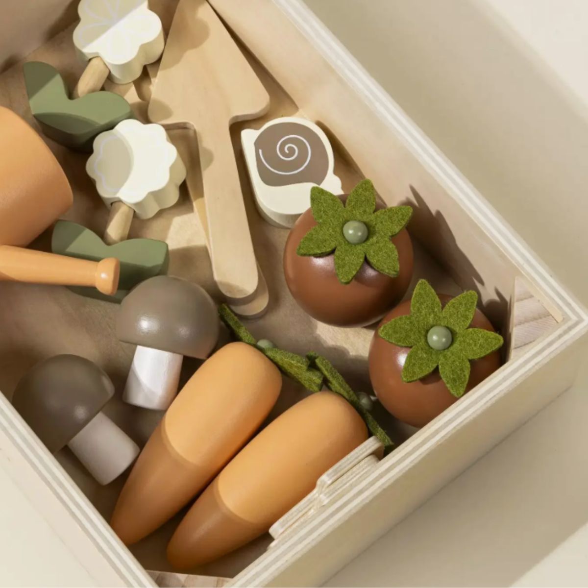 Inspire a love for nature with this charming wooden garden set. Complete with carrots, mushrooms, tomatoes, and flowers, it invites little ones to explore gardening through imaginative play. A hands-on way to encourage curiosity, fine motor skills, and learning.